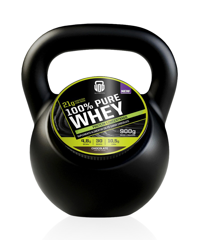 Whey 100% da Wod Nutrition está disponível em embalagem exclusiva de Kettlebell, perfeita para carregar para seus treinos na academia.